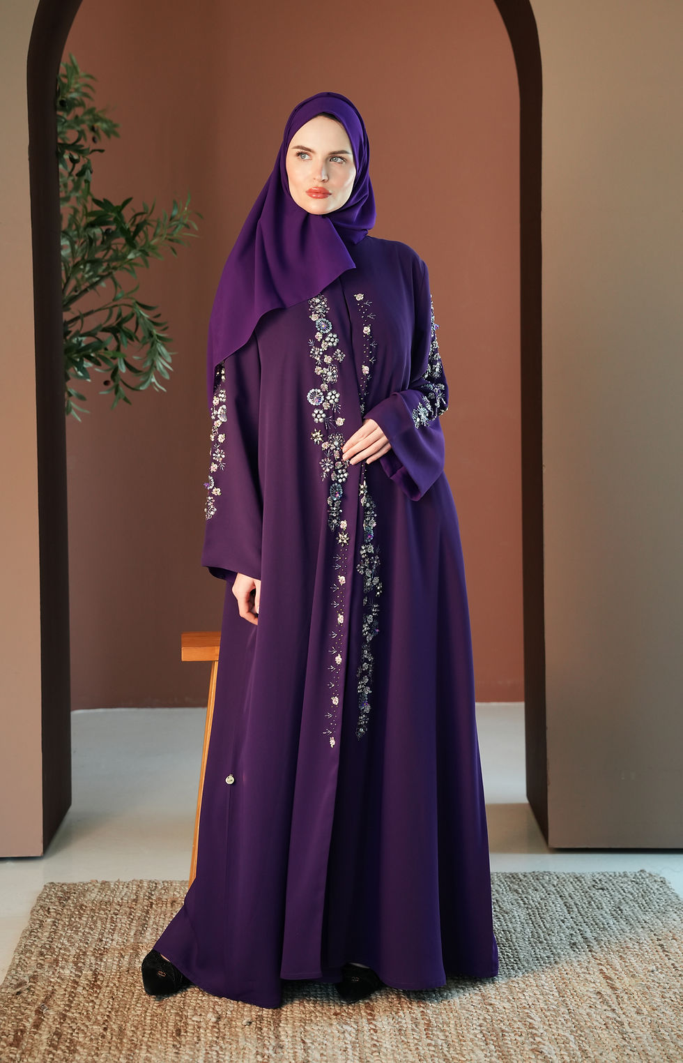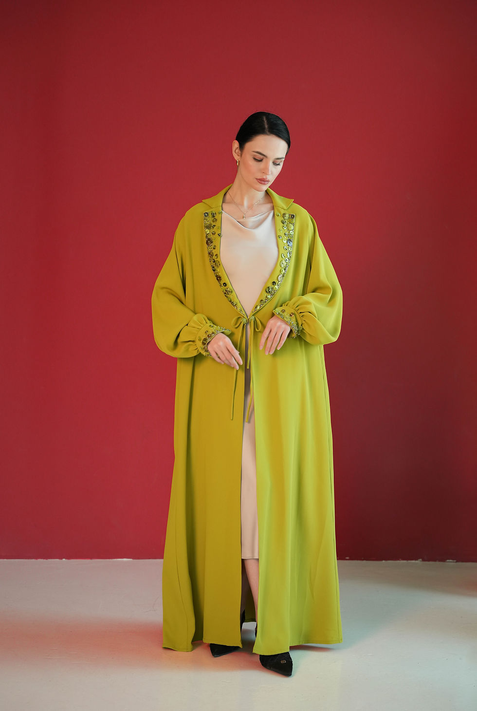 Breathable crepe Fabric, Beaded Abaya